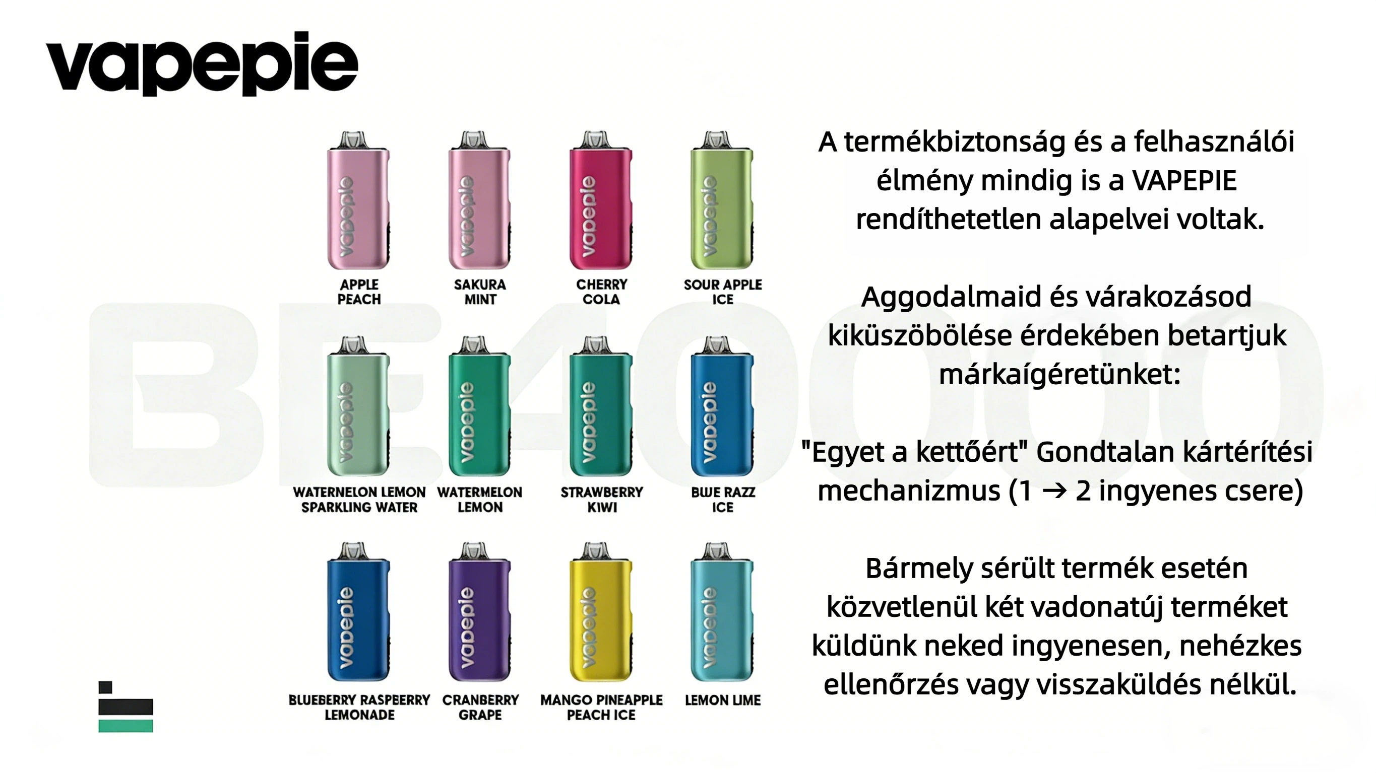 A Vapepie elkötelezett az innováció mellett, folyamatosan feltörve a határokat, hogy a világ minden táján fejlődő vaperek igényeit magas szinten kielégítő termékeket kínáljon. Csatlakozz a Vapepie forradalomhoz, és emeld fel vape-elményedet még ma!